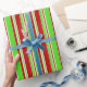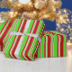 Papier Cadeau Fun Vert, Blanc, Rouge Style de Noël Lignes