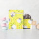 Un rouleau de papier à envelopper pour customiser, avec un motif amusant de moutons comiques et "Cymru am Byth" en rouge, sur un arrière - plan jaune soleil que vous pouvez changer si vous le souhaitez, en utilisant le bouton Modifier > Arrière - plan.