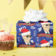 cet humour de fête politique à un seul style de rouleau de papier cadeau de noël présente un dessin du président élu joe biden en lunettes de soleil, un manteau bleu profond et un chapeau santa. L'arrière - plan est d'un bleu patriotique, avec un motif sans couture du mot "ho" en blanc dans des formes et des tailles différentes.