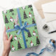 Illustration amusante de Noël de chats dans les chapeaux de Santa, avec des petites souris, des poissons et des fils autour des arbres de Noël. Motif imprimé sur un arrière - plan vert.