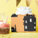 Ce papier d'emballage amusant pour enfants est parfait pour Halloween. Ce design amusant comprend un motif avec un arrière - plan orange et une maison hantée noire.