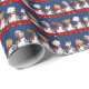 A funny dog choir on Christmas wrapping paper. Featuring six toy dog breeds singing carols, including a Dachshund, Yorkie, Bichon Frise, Chihuahua, a Pomeranian and a Pug. Each doggy choirboy is wearing traditional red and white robes and holding a hymn book and candle.