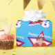 Papier d'emballage d'anniversaire dans un vieux bleu et rouge ajouter votre propre design photo. Personnalisez ce garçon en papier d'anniversaire avec votre propre photo, nom et âge. Lit actuellement Joyeux anniversaire Jayden 8 aujourd'hui. Uniquement conçu par Sarah Trett.