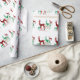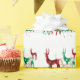 Papier d'emballage de Noël d'un style unique conçu avec des rennes de cristal aquarellés à la main dans trois variétés de pierres précieuses : émeraude, rubis et diamant