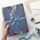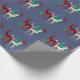 Uniquely stylish country blue Christmas wrapping paper designed with hand-painted watercolor crystal reindeer in three gemstone varieties: emerald, ruby and diamond