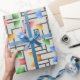 Papier Cadeau Géométrique Abstrait bleu rose jaune vert