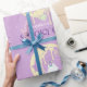 Éffrayante lune jaune melty avec arrière - plan violet et un mignon fantôme éffrayant avec un ami hibou. Parfait pour une gentillesse éffrayante Boo ! Personnalisez le nom de votre petite fille pour un papier d'emballage cadeau Spooktacular Halloween 1er anniversaire.
