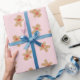 Cozy pink christmas wrapping paper featuring cute gingerbread cookies. A warm and charming design for holiday gift giving.