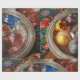 Papier Cadeau Glass ornaments in silver box with folk art