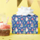 Gnome de Noël pour Motif de vacances papier d'enveloppement bleu. Comprend un arrière - plan bleu et motif de gnomes, cadeaux, saints, sucres de canne, arbres de Noël, et sac Père Noël. Personnalisez cette image carrelée. Modifiez-le pour plus de personnalisation.