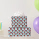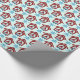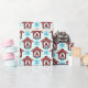 Ce papier d'emballage est agrémenté d'un motif graphique sur le thème de Noël de génomes répétés debout dans la porte d'un cabine scandinave rouge entrecoupé de flocons de neige bleus. La couleur arrière - plan peut être customisée.