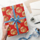Papier d'emballage rouge personnalisable avec papier traditionnel chinois doré coupé de Deux jeunes tigres en un cercle ouvert (modèle n°2). Parfait pour le Nouvel An Chinois du Tigre 2022 ou anniversaire (personnes nées dans l'Année du Tigre). Carte de voeux, carte postale, autocollant, carnet et plus...