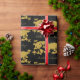 Papier Cadeau Gold Glitter World Map on Black Elegant Wedding