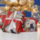 Enveloppez tous vos cadeaux cette année dans notre adorable papier chiot de Noël Golden Retriever ! C'est un type heureux que Père Noël est en route.