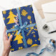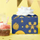 Cette carte de Noël éblouit par une mer de flocons de neige dorés et d'arbres de Noël, le tout dressé contre un arrière - plan bleu royal, évoquant la splendeur d'un Noël ukrainien traditionnel avec une touche artistique moderne.