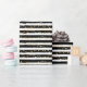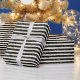 Brillant avec du papier d'enveloppement Golden Star Stripe - des touches en noir et blanc surmontées d'étoiles dorées scintillantes pour une élégance festive.