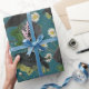 Papier Cadeau Goth Crows et Roses noirs Profond Turquoise Motif