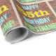 Cette conception amusante de papier d'emballage sur le thème de l'anniversaire comporte un message comme "HAPPY 55th BIRTHDAY, FIRSTNAME!", où le nom peut être personnalisé. L'arrière - plan est représenté par un mur en brique composé de briques de couleur rougeâtre. Le texte du message personnalisable comporte des couleurs comme le bleu, le jaune et le vert, et il a un aspect inspiré de celui des graffitis peints. Un papier comme celui-ci pourrait peut-être être utilisé pour envelopper les cadeaux d'anniversaire donnés à quelqu'un qui célèbre son cinquante-cinquième anniversaire. [~Z0000274]