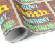 Cette conception amusante de papier d'emballage sur le thème de l'anniversaire comporte un message comme "HAPPY 56th BIRTHDAY, FIRSTNAME!", où le nom peut être personnalisé. L'arrière - plan est représenté par un mur en brique composé de briques de couleur rougeâtre. Le texte du message personnalisable comporte des couleurs comme le bleu, le jaune et le vert, et il a un aspect inspiré de celui des graffitis peints. Un papier comme celui-ci pourrait peut-être être utilisé pour envelopper les cadeaux d'anniversaire donnés à quelqu'un qui célèbre son cinquante-sixième anniversaire. [~Z0000274]