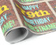 Cette conception amusante de papier d'emballage sur le thème de l'anniversaire comporte un message comme "HAPPY 79th BIRTHDAY, FIRSTNAME!", où le nom peut être personnalisé. L'arrière - plan est représenté par un mur en brique composé de briques de couleur rougeâtre. Le texte du message personnalisable comporte des couleurs comme le bleu, le jaune et le vert, et il a un aspect inspiré de celui des graffitis peints. Un papier comme celui-ci pourrait peut-être être utilisé pour envelopper les cadeaux d'anniversaire donnés à quelqu'un qui célèbre son soixante-dix-neuvième anniversaire. [~Z0000274]