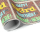 Cette conception amusante de papier d'emballage sur le thème de l'anniversaire comporte un message comme "HAPPY 93rd BIRTHDAY, NAME-HERE!", où le nom peut être personnalisé. L'arrière - plan est représenté par un mur en brique composé de briques de couleur rougeâtre. Le texte du message personnalisable comporte des couleurs comme le bleu, le jaune et le vert, et il a un aspect inspiré de celui des graffitis peints. Un papier comme celui-ci pourrait peut-être être utilisé pour envelopper les cadeaux d'anniversaire donnés à quelqu'un qui célèbre son quatre-vingt-treize anniversaire. [~Z0000274]