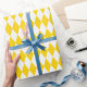 Un papier d'emballage conçu avec un motif arlequin jaune et blanc doré en grande taille. Vous pouvez changer le blanc pour une couleur différente de manière simple.