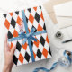Un papier d'emballage conçu avec un motif arlequin noir, orange vif et blanc en grande taille. Customisez la couleur blanche de l'arrière - plan parmi d'autres options.
