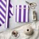 Un papier d'emballage avec un motif moderne à rayures violettes et blanches.