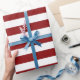 Papier Cadeau Grandes bandes LignesRuby Red Metallic Effet Blanc