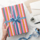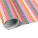 Papier d'emballage de Noël Gras Moderne Bright Stripe. Préparez-vous à fêter la saison en style grâce à ce joyeux et audacieux emballage cadeau de Noël rayé moderne et amusant. Couleurs de Noël inattendues : rose, vert turquoise, jaune doré et corail pour des vacances joyeuses !