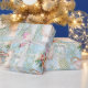 Le papier d'emballage vert et bleu jardin a un look vintage et chic shabby. Le design coloré est doux, élégant et mignon, ce qui le rend parfait pour envelopper un cadeau spécial pour votre maman, soeur, amie, douche nuptiale, ou même votre professeur. Le papier est orné d'illustrations aquarelles de papillons, de tasses, de théières, de coeurs, de bouquets de fleurs et de cadres ronds et carrés. Tous ces éléments sont dressés contre un délicat arrière - plan de carrés de pinceau blanc et bleu et un écran vert.