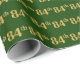 Ce papier d'emballage présente le numéro ordinal "84e" avec une apparence fausse or. Il dispose également d'un arrière - plan vert. Il pourrait être utilisé pour envelopper un cadeau donné pour le quatre-vingt-quatrième anniversaire de quelqu’un, ou peut-être pour le quatre-vingt-quatrième anniversaire de mariage d’un couple marié, ou pour un autre 84e événement/occasion. [~Z0000020]