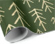 Motif en feuille d'or dessiné à la main sur un arrière - plan vert de vacances. Parfait pour un cadeau qui apporte beaucoup d'amour, de paix et de joie. Papier d'enveloppement Motif Green Gold Holiday Tree.