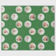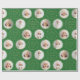Christmas gift wrapping paper feature modern Merry Christmas script and botanical leaves wreaths, with personalized family name and 6 photos in green and gold, simple and elegant.