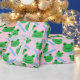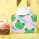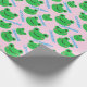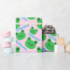 Grenouille verte souriante Motif rose doux papier enveloppant la vie. Ce papier d'emballage est mignon et personnalisable avec prénom enfant.