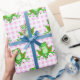 Papier Cadeau Grenouilles vertes sur En vichy rose