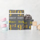 Ce design papier d’emballage comporte un message comme "93e anniversaire de prénom !", le "93e" ayant une apparence de couleur fausse/imitation or. Le nom peut être personnalisé et l'arrière - plan est gris (gris). Il pourrait peut-être être utilisé pour envelopper les cadeaux donnés pour le quatre-vingt-treize anniversaire de quelqu’un. [~Z0000185]