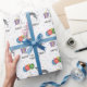 Papier Cadeau Greyhound Italien Bleu Et Blanc - Joyeux anniversa