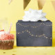 Fond bleu foncé avec effet bohème et guirlandes de lumières féeriques dorées. Incroyable pour votre emballage cadeau.