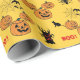 Papier d'emballage à thème d'automne ou d'Halloween avec Jack o' lanterns, des arbres effrayants, chat, Boo et plus.