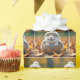 Un mignon hamster est enroulé doucement dans un casquette tricoté et une écharpe, assis dans une coquille de noyer entourée de feuilles d'automne