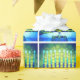 Papier Cadeau Hanoukka moderne tendance bleu vert Menorah Motif