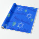 Ce papier d'emballage a un design Hanoukka de dreidel, Star of David, et "Happy Hanoukka" sur un arrière - plan bleu. Idéal pour la saison.