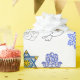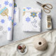 Celebrate the warm glow and playful spirit of Hanukkah with wrapping paper that brings the holiday into every gift. Soft blue and gold menorahs, Stars of David, dreidels, snowflakes, doves, and hamsa motifs repeat across a crisp white background, creating a joyful, modern pattern that feels both festive and thoughtful. The high-definition print holds bright color and fine detail, so each present arrives looking cared-for and considered. Lay it out for a family gathering, use it to wrap teacher treats, or tuck it around small hostess gifts for a neighbor — the design quietly signals celebration and tradition without shouting.