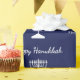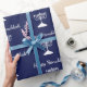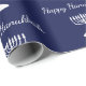 Happy Hanoukka Blue Holiday papier d'emballage, avec un simple motif de menorah blanc et la conception de typographie de script. Avec des lettres personnalisables en blanc, vous pouvez ajouter vos propres informations. Un objet de fête pour envoyer des cadeaux spéciaux cette saison.