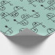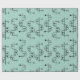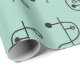 Ce papier d'emballage a un design moderne du milieu du siècle qui ressemble à une hélice d'ADN avec une ligne verticale qui a une ligne incurvée traversant avec de petites lignes avec des cercles sur les extrémités.
