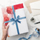 Enveloppez vos cadeaux ou créez des objets artisanaux chatoyants avec ce papier dessiné pour ours en peluche. Cet ours de la Saint Valentin tient des ballons en forme de coeur et porte une cravate d'arc à pois rouges. Il y a un arrière - plan de coeur contrasté rouge et un accueil que vous pouvez acheter comme indiqué avec "Heureuse Sainte-Valentin" ou ajouter vos propres mots. Quiconque reçoit un cadeau de vacances enveloppé de ce papier mignon sourira parce que cet ours en peluche est si mignon.