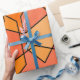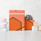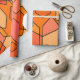 Ce papier d'emballage a une conception inspirée du Bauhaus d'hexagones qui se chevauchent à l'ombre de l'orange.