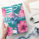 Aquarelle design motif avec fleurs d'hibiscus et feuilles de palmiers