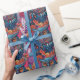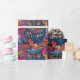Papier Cadeau Hibou Art Dessin hibou bleu et fleurs roses